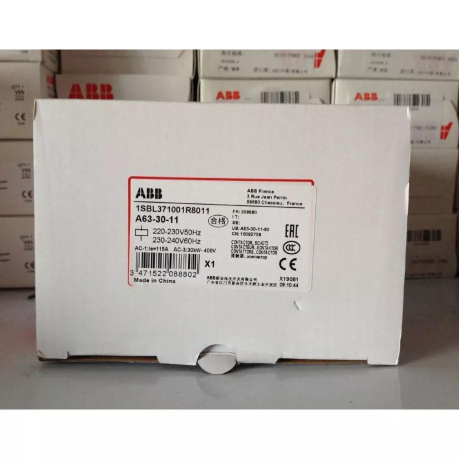 A63 contactors are mainly used for controlling 3-phase motors and generally for controlling power circuits up to 690 V AC / 1000 V AC or 220 V DC. The contactors can also be used for many other applications such as isolation, capacitor switching, lighting. The A… series 1-stack 3-pole contactors are of the block type design. – Main poles and auxiliary contact blocks: 3 main poles, front and side-mounted add-on auxiliary contact blocks – Control circuit: AC operated with laminated magnet circuit – Accessories: a wide range of accessories is available.